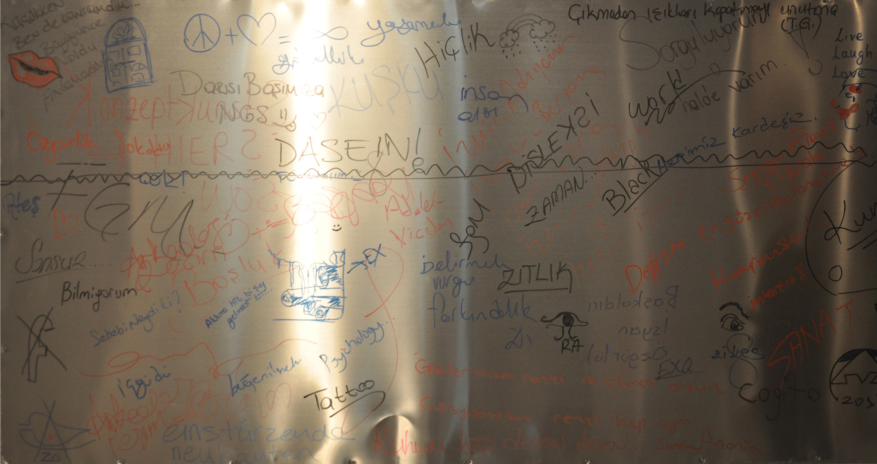 Mimesis, one of the most important phenomena of antiquity and traditional art, is a phenomenon whose existence is completely denied in the understanding of contemporary art. What you have seen in this study is a proof that mimesis does not actually disappear, but only a distortion, in other words deconstruction, with the Postmodern understanding.Descartes "I am thinking! "So I am", starting with the words of Barbara Kruger, "I consume! "I am sharing!" I wanted to express a new way of questioning by saying “Then I am”.As a tech-savvy person who wants to criticize it on the one hand, I think I was able to present this article with my own handwriting and express that my criticism is not only an intellectual but also an operational journey.The aim is to turn to the structure of the object under study. Structuralism is the search for a system formed by some rules or laws that lie at the bottom of a number of phenomena on the surface. Considering the phenomenon of rapid sharing in public spaces, such an expression has been chosen. The traditional act of writing is combined with this degraded mimesis board, the entry of technology into our lives, which creates a fast addiction and enslaves speed.Everything written and drawn is anonymous in common consciousness. I expect all your emotions to be expressed.