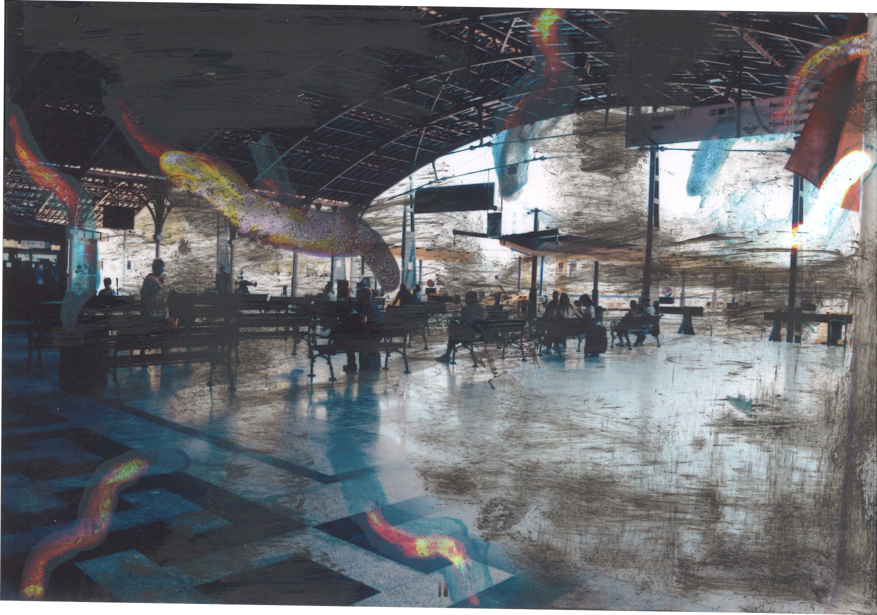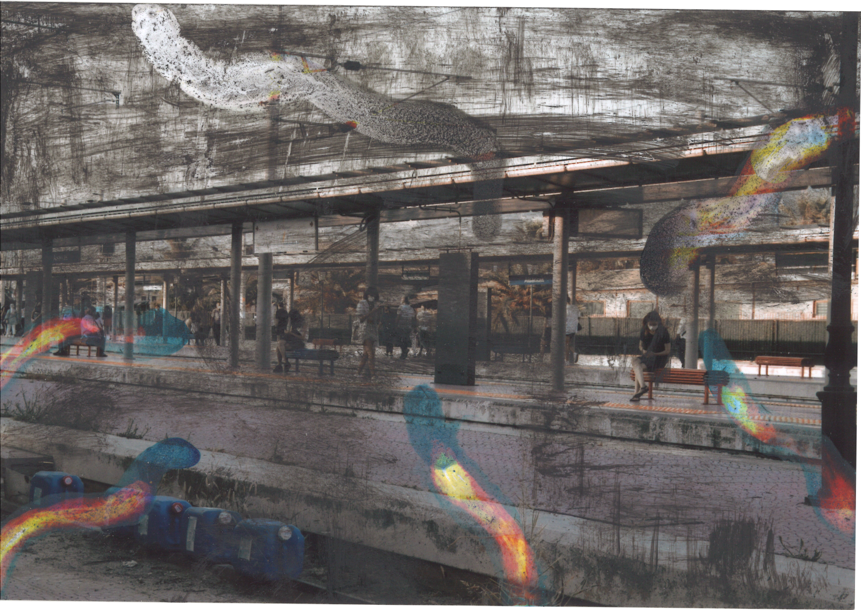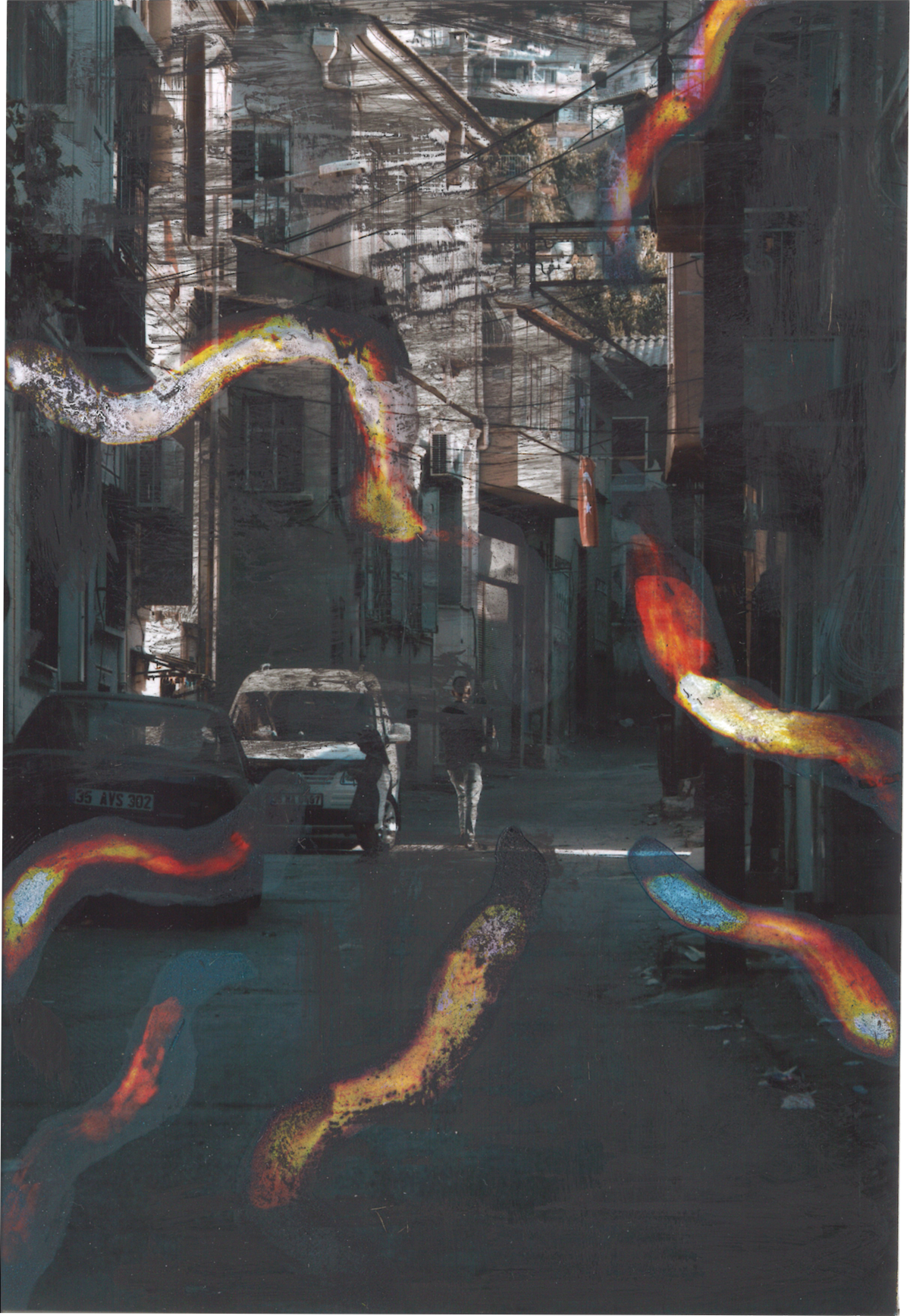 Even though the liminal areas have a lot of diversity within themselves, we aim to deepen on the Basmane Train Station in İzmir, the 'abbara' in Mardin and the surrounding areas, photograph these areas and exchange between us, and as two artists with painting backgrounds, within the scope of 'Exchange'. We preferred to interpret their obscurity, fluidity, permeability, conflict and reconciliation with our own techniques. Looking at the liminal areas in each other's cities, which we never knew, through the photographs we took for each other and interpreting the notion of betweenness excited us on the one hand, and on the other hand pushed the limits of our perception.