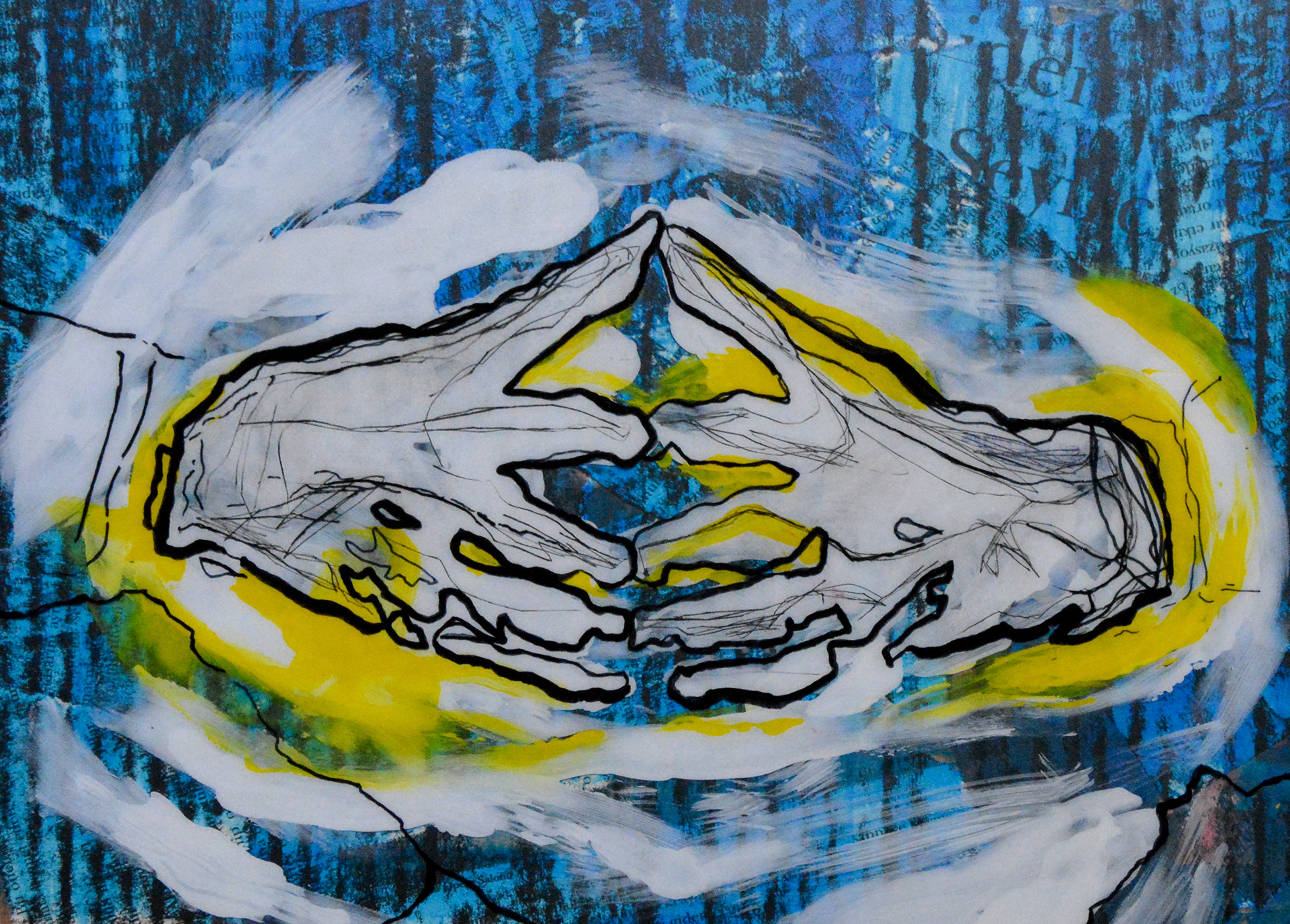 Listening (!), Mixed Media on Cardboard 25x30, 2024